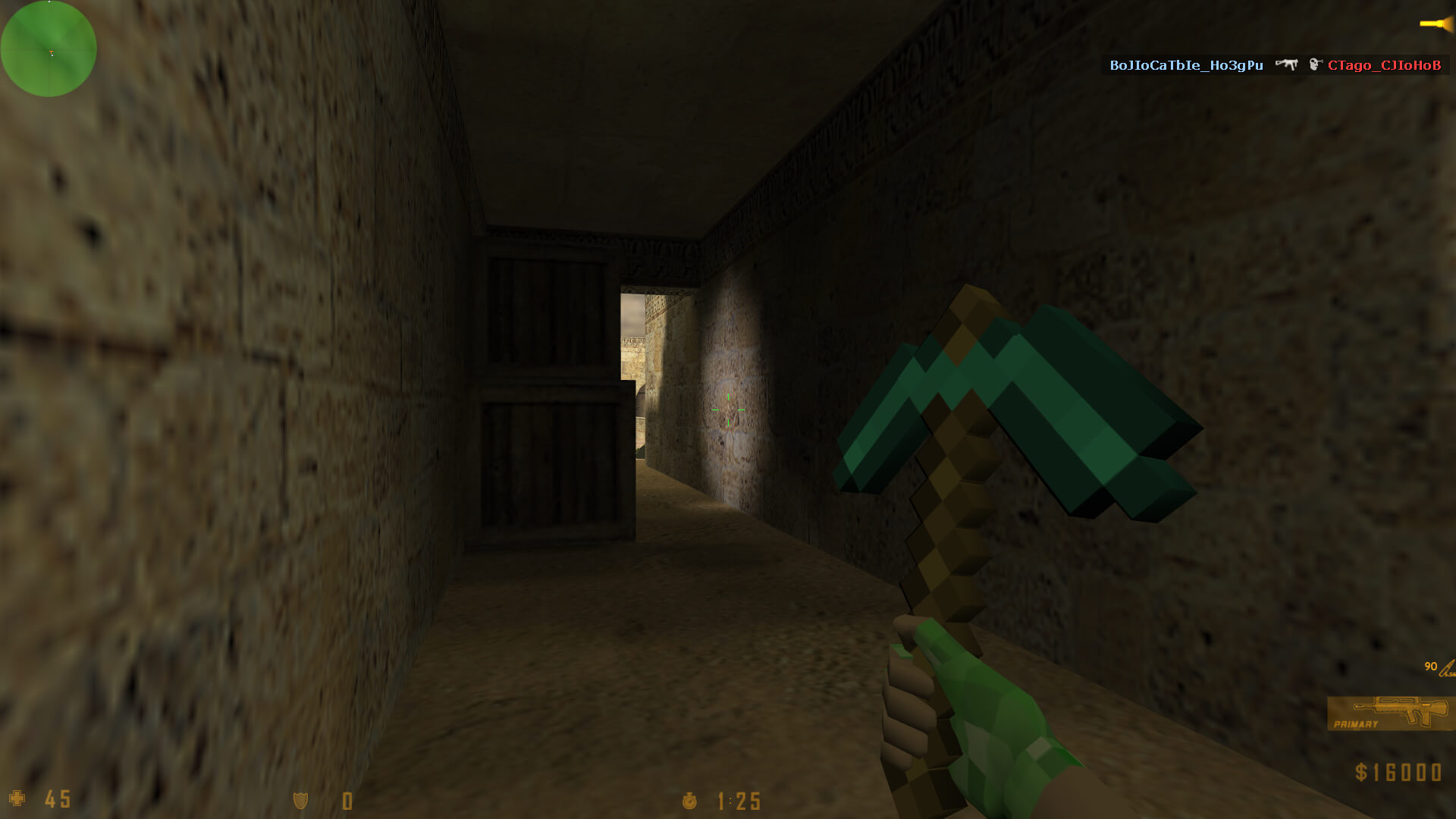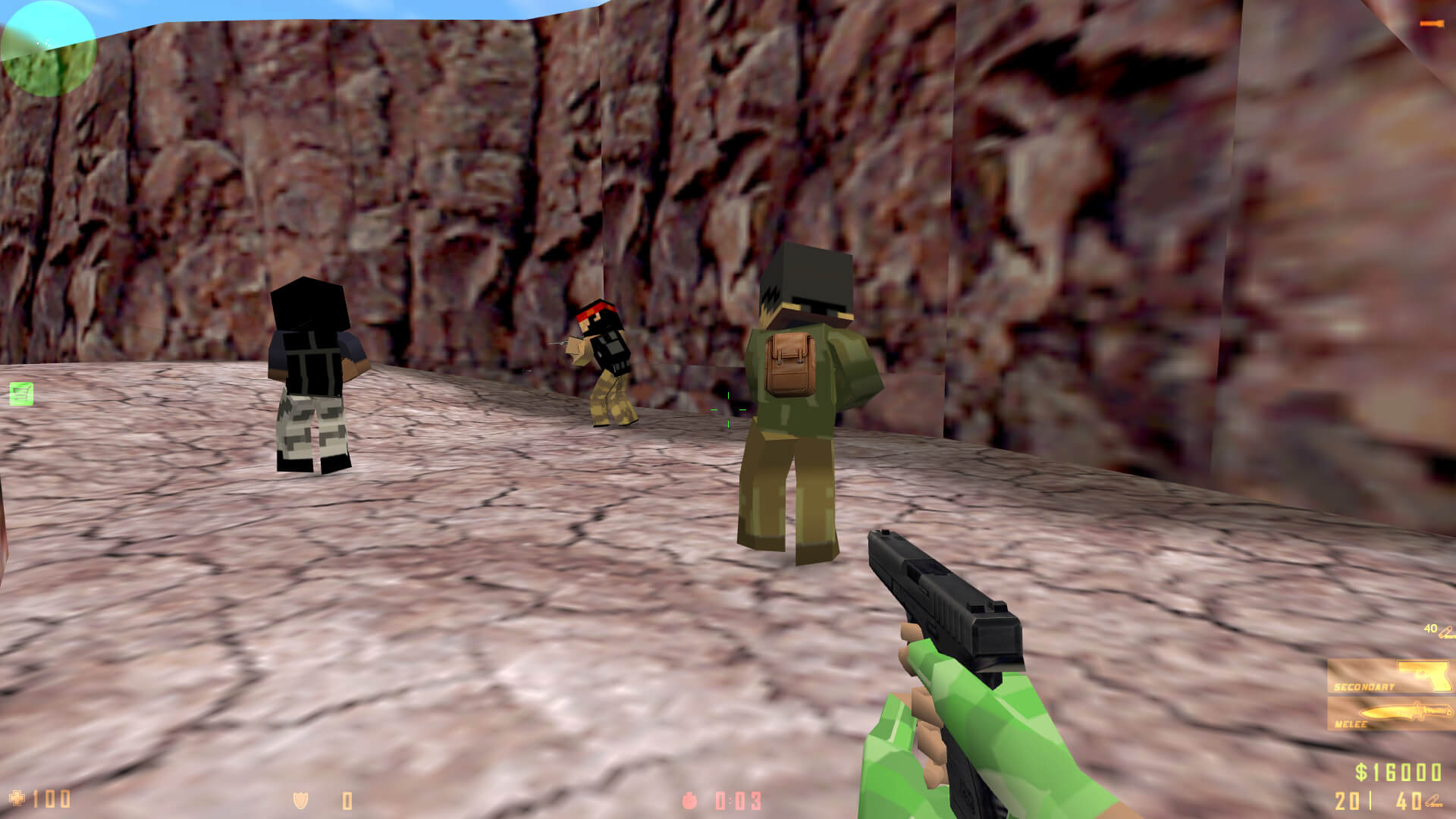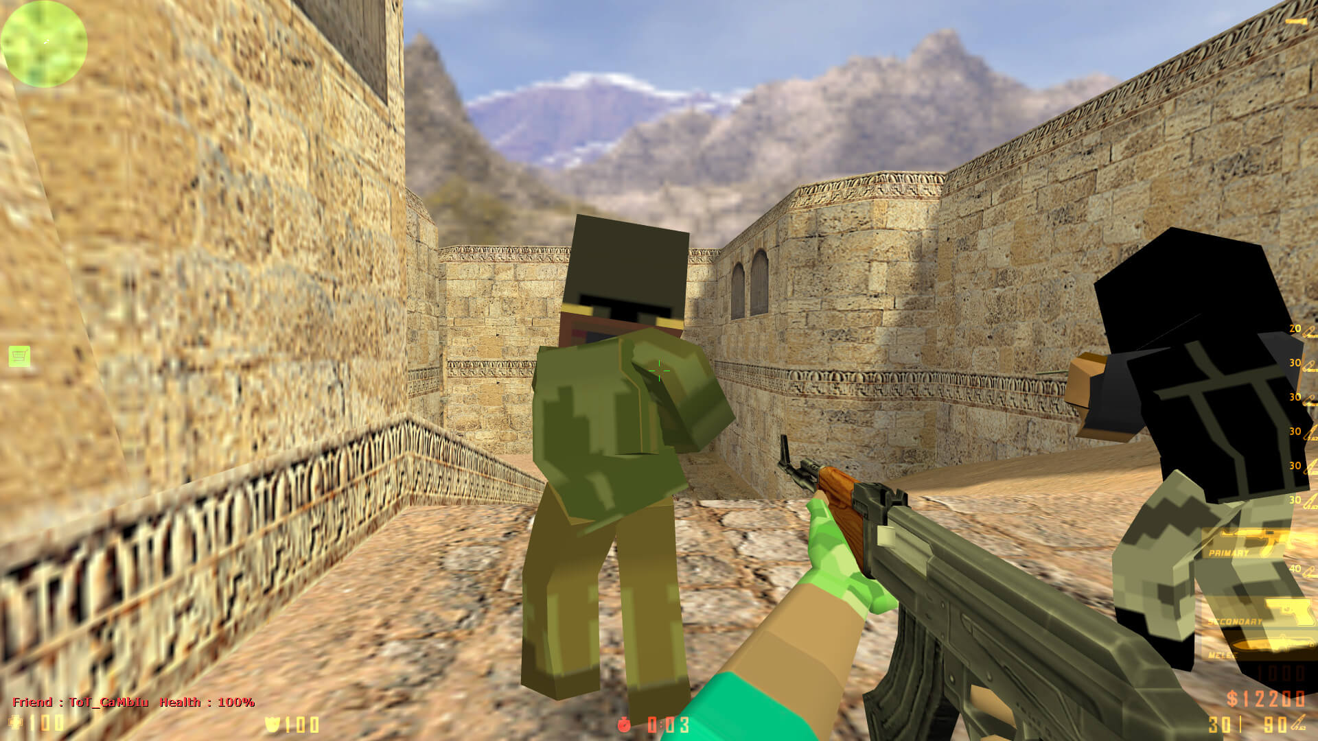 No clutter, just essential info popping against blocky backdrops. Radar shows sites as mini-fortresses, teammate pings as glowing beacons. It's intuitive, letting you focus on the action without squinting. That clean HUD keeps your K/D climbing while you admire the counter strike 1.6 minecraft polish.